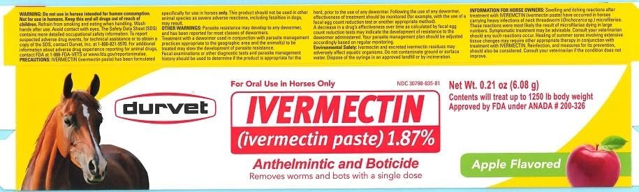 Ivermectin Paste Dewormer – 6.08g dose @ 1.87%-Apple Flavored, 3 Count