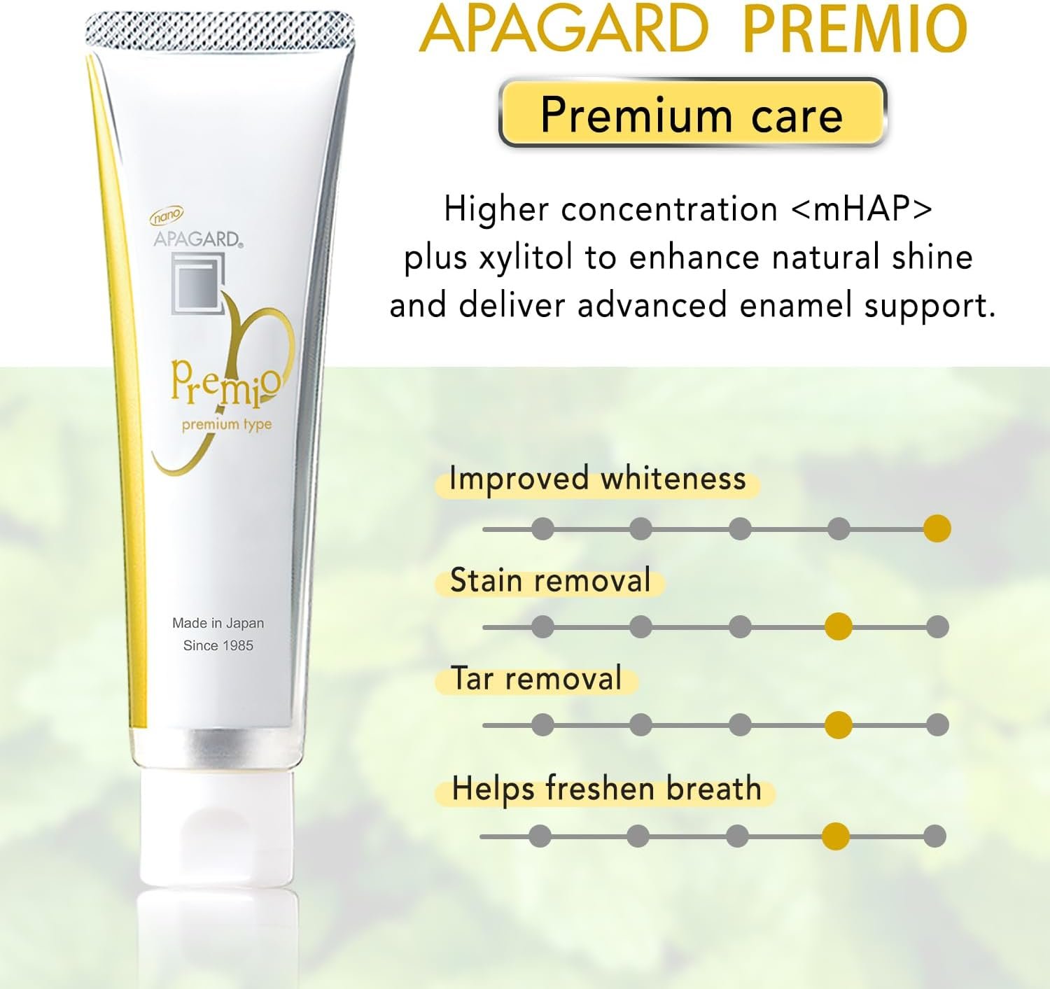 APAGARDĀ® Premio, Sangi’s Nano-Hydroxyapatite Toothpaste for Naturally Whiter Teeth. Fluoride-Free, Premium Type, 105g / 3.7 oz, Double Mint Flavor, Single Pack