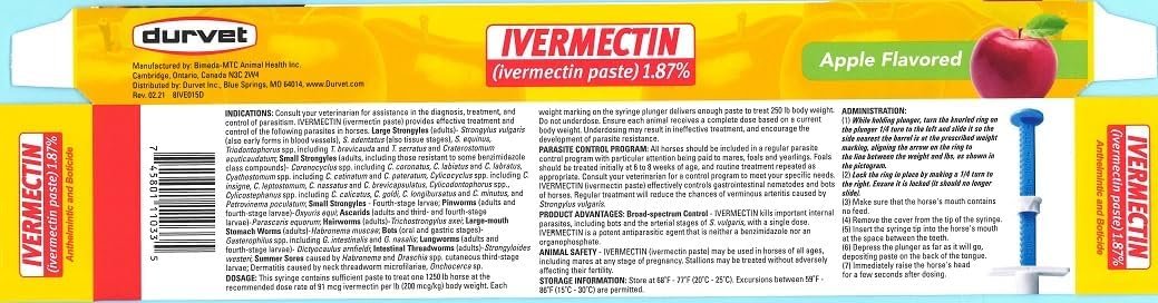 Ivermectin Paste Dewormer - 6.08g dose @ 1.87%-Apple Flavored, 3 Count
