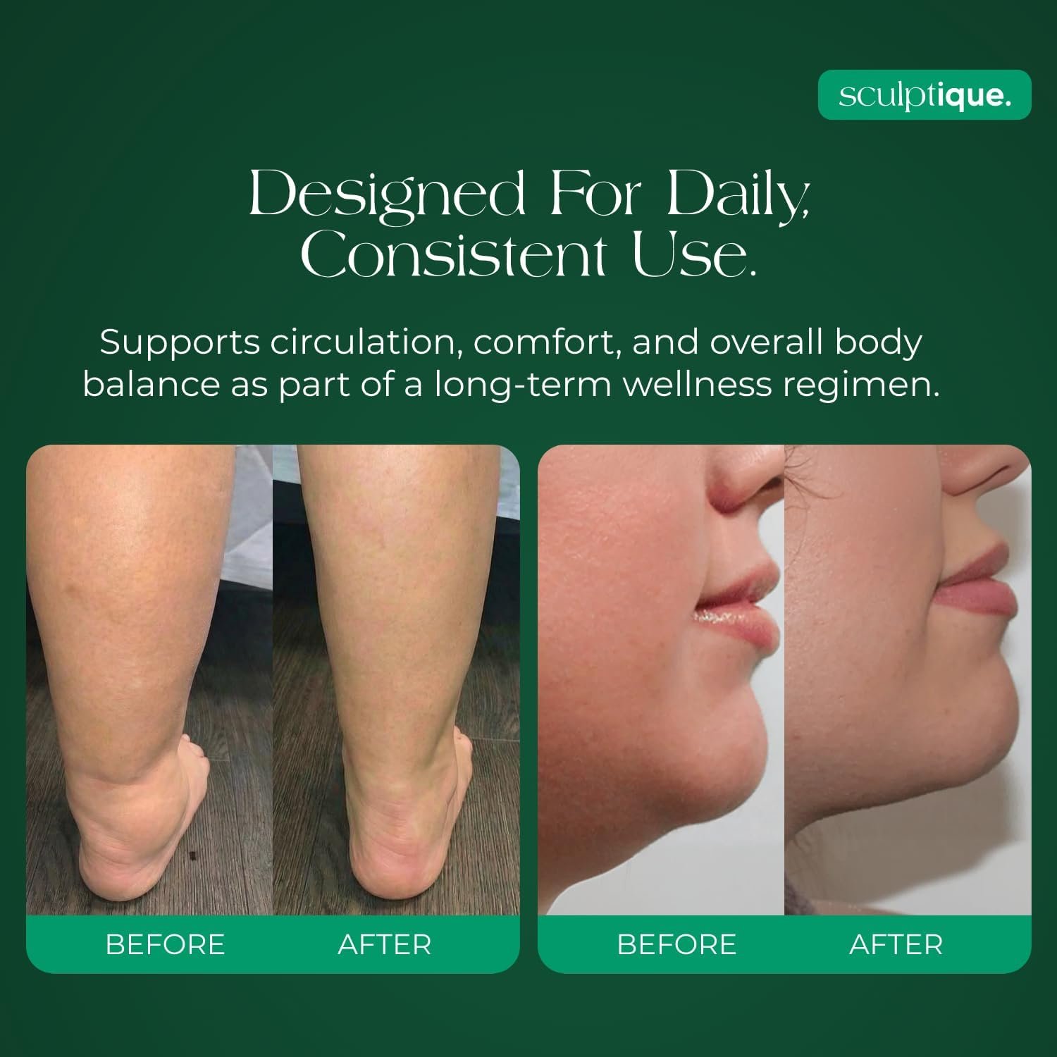 - Easy-to-Take Capsules for Daily Consistency: Delivered in convenient capsule form with no powders, teas, or complicated cleanses required. Sculptique lymphatic drainage capsules are designed for daily use, making it easy to stay consistent without disrupting morning or evening routines.